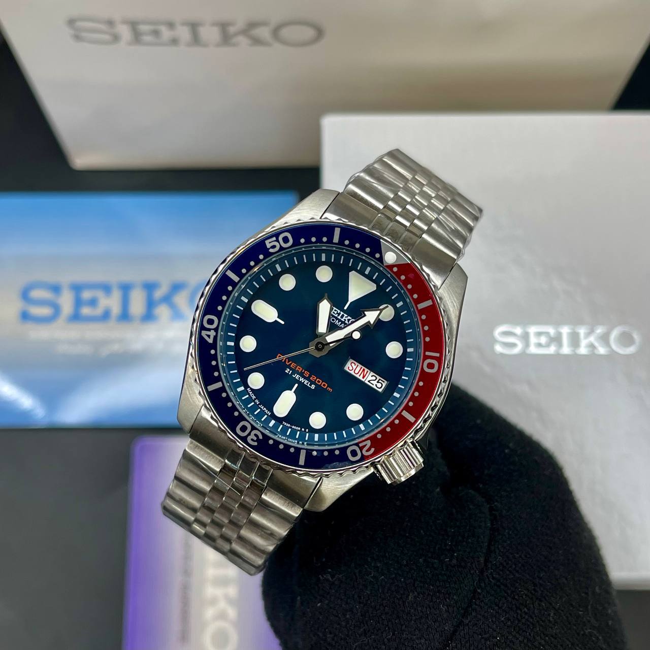 ساعت مچی مردانه سیکو صفحه گرد آبی قرمز بند فلزی استیل