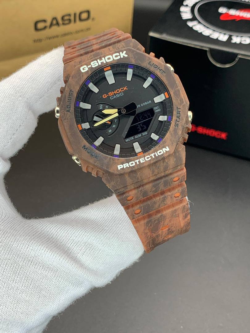 ساعت مچی کاسیو جیشاک مدل GA-2100 صفحه مشکی بند قهوه ای