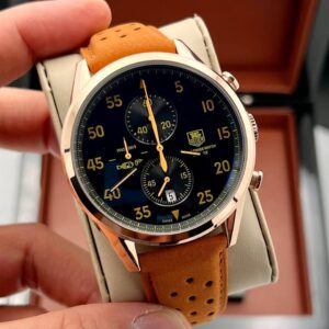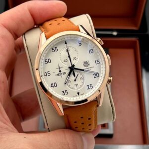 ساعت مردانه تگ هویر مدل اسپیس tag heuer Spacex – سفید/ بند قهوه ای