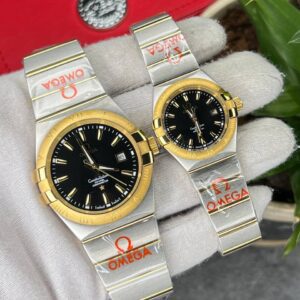 ساعت مچی مردانه و زنانه امگا کانسلیشن OMEGA Canstllation نقره ای طلایی صفحه مشکی اندیکس خطی