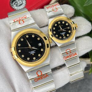 ساعت مچی مردانه و زنانه امگا کانسلیشن OMEGA Canstllation نقره ای طلایی صفحه مشکی اندیکس نگین