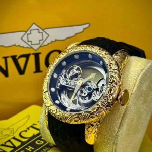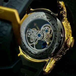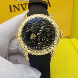 ساعت مچی مردانه اینویکتا اسکلتون مدل یاکوزا بند رابر صفحه طلایی ومشکی INVICTA 2023G-B