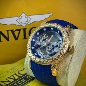 ساعت مچی مردانه اینویکتا اسکلتون مدل یاکوزا بند رابر سورمه ای طلایی INVICTA 2023G-S