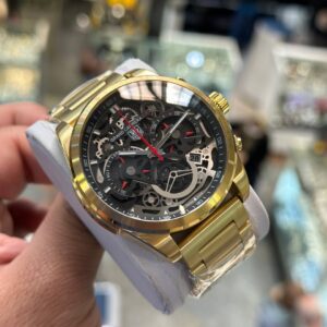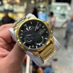 ساعت مچی مردانه تگ هویرCR7 صفحه دایره مشکی بند طلایی