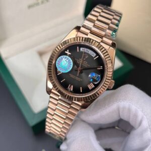 ساعت مچی مردانه رولکس دی دیت ROLEX DAY DATE رنگ مشکی بند رزگلد