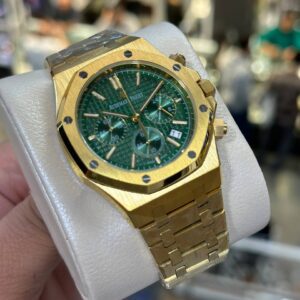 ساعت مچی مردانه ادمایز پیگه ap صفحه دایره سبز بند طلایی