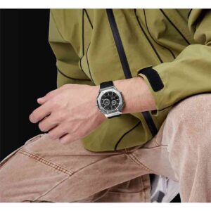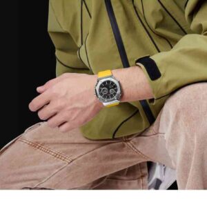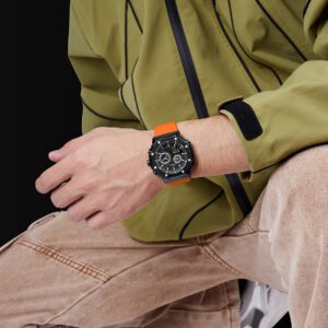 موتور کوارتز ساخت ژاپن با کیفیت عالی دارای نشانگر : تاریخ , ساعات دوم دیجیتالی , روزهای هفته و روزهای ماه , تایمر و کرنومتر بند رابر درجه یک شیشه کریستالی مقاوم در برابر خش مقاوم در برابر آب (در حد پاشش اب) قطر صفحه : 45 میلیمتر ضخامت ساعت : 16 میلیمتر مناسب دور مچ تا 220 میلیمتر وزن ساعت : 102 گرم دارای جعبه و پاکت اصلی NAVIFRORCE دارای دو سال گارانتی ایران نیوی فورس