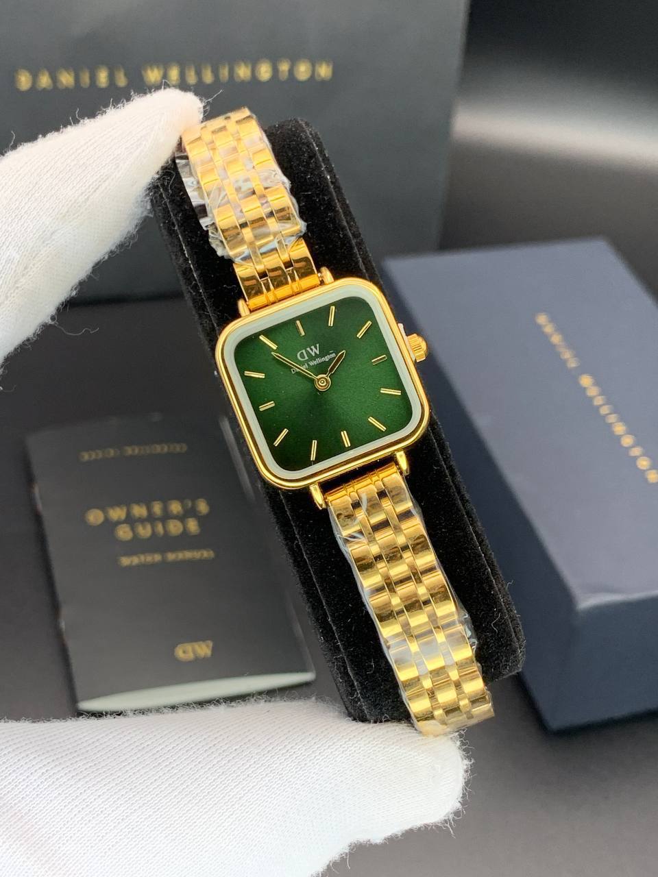 ساعت مچی زنانه دنیل ولینگتون (DW) صفحه مربع سبز بند طلایی