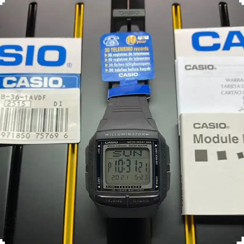 ساعت مچی دیجیتال Casio مدل DB-36-1AVDF از سری Data Bank برند کاسیو، نمادی از ترکیب طراحی کلاسیک، ویژگیهای کاربردی و دوام بالاست. این ساعت که یکی از مدلهای محبوب و پرفروش کاسیو به حساب میآید، برای افرادی طراحی شده که به ساعتی چندمنظوره، سبک، مقاوم و بادوام نیاز دارند، بدون اینکه هزینه بالایی پرداخت کنند.