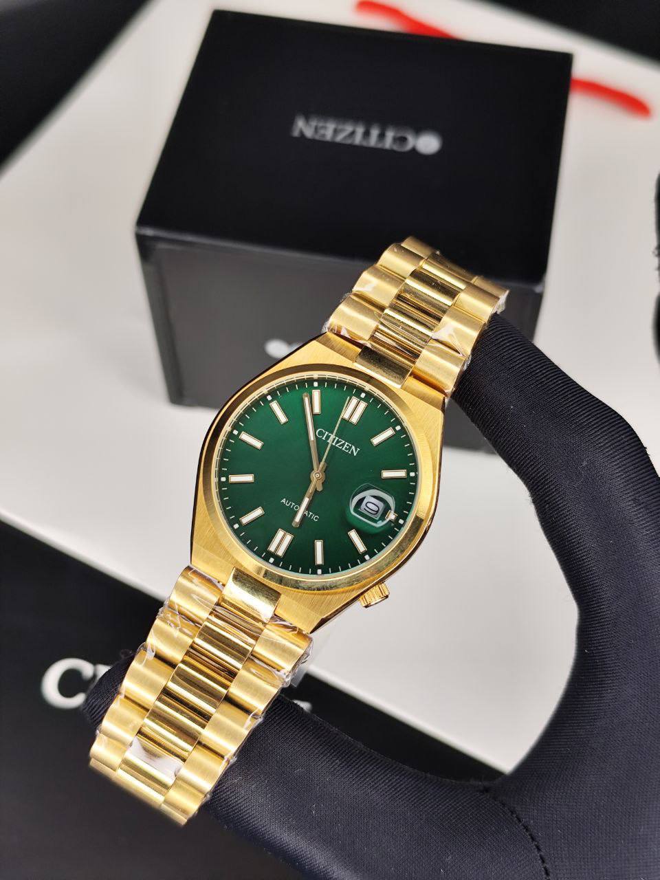 ساعت مچی مردانه سیتیزن سویوسا اتوماتیک سبز بند طلایی