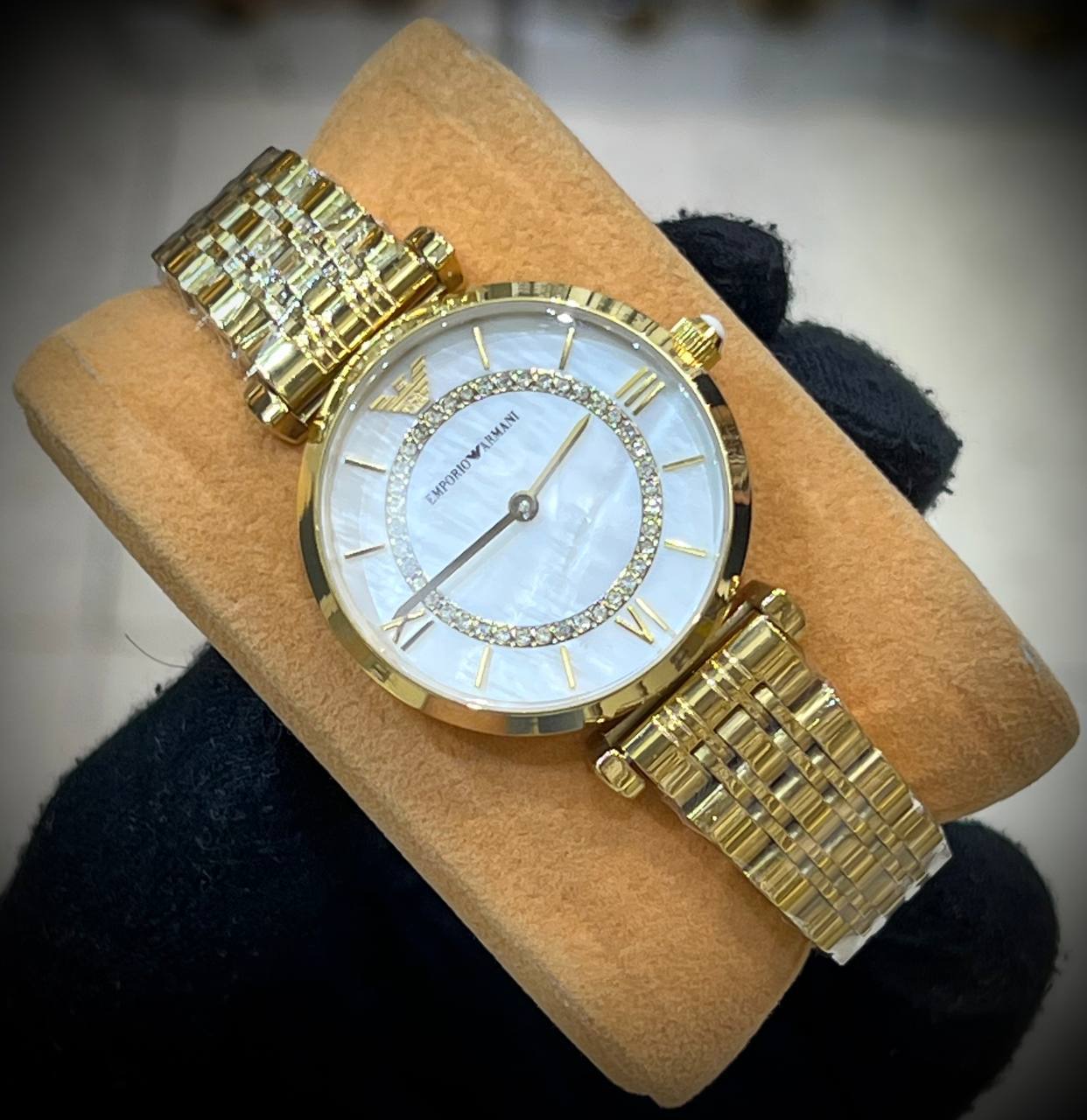 ساعت مچی زنانه امپریو ارمانی صفحه سفید بند فلزی طلایی