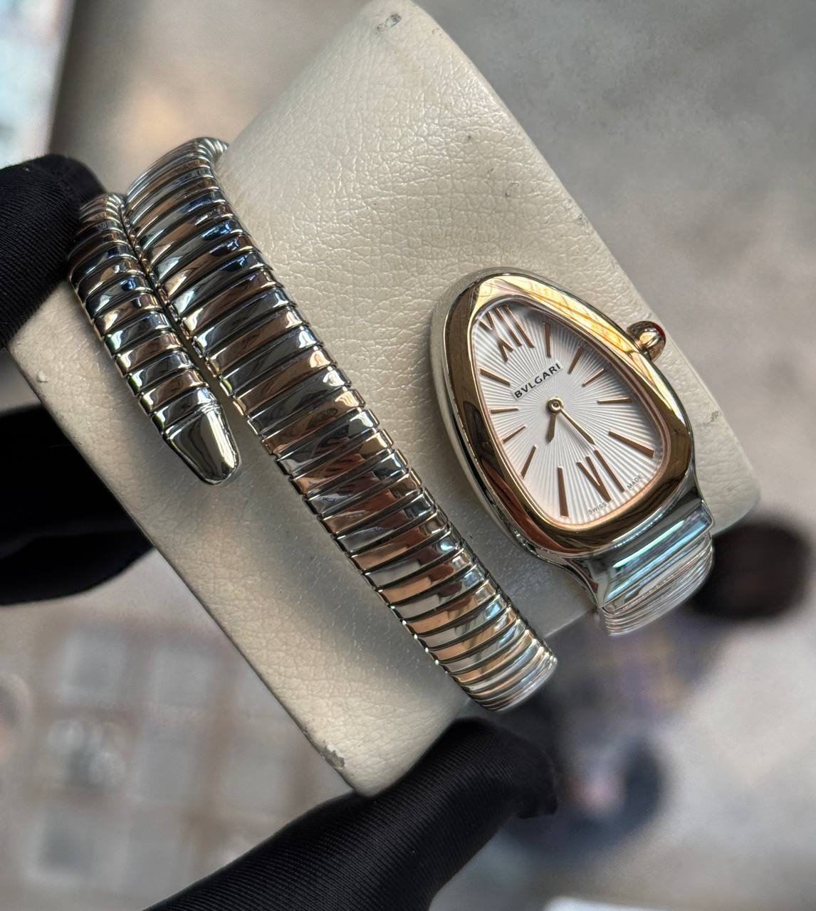 ساعت مچی زنانه بولگاری ماری صفحه سفید ساده بند رزگلد