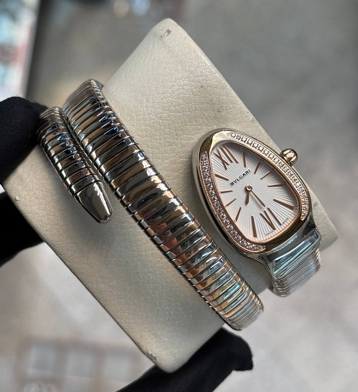 ساعت مچی زنانه بولگاری ماری صفحه سفید نگین دار بند استیل رزگلد