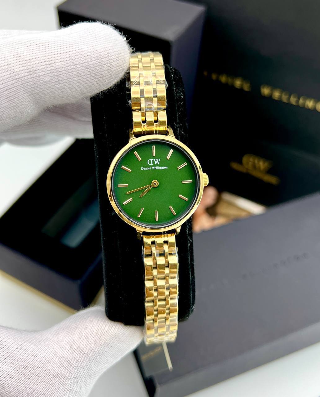 ساعت مچی زنانه دنیل ولینگتون DW صفحه سبز اندیس خطی بند طلایی