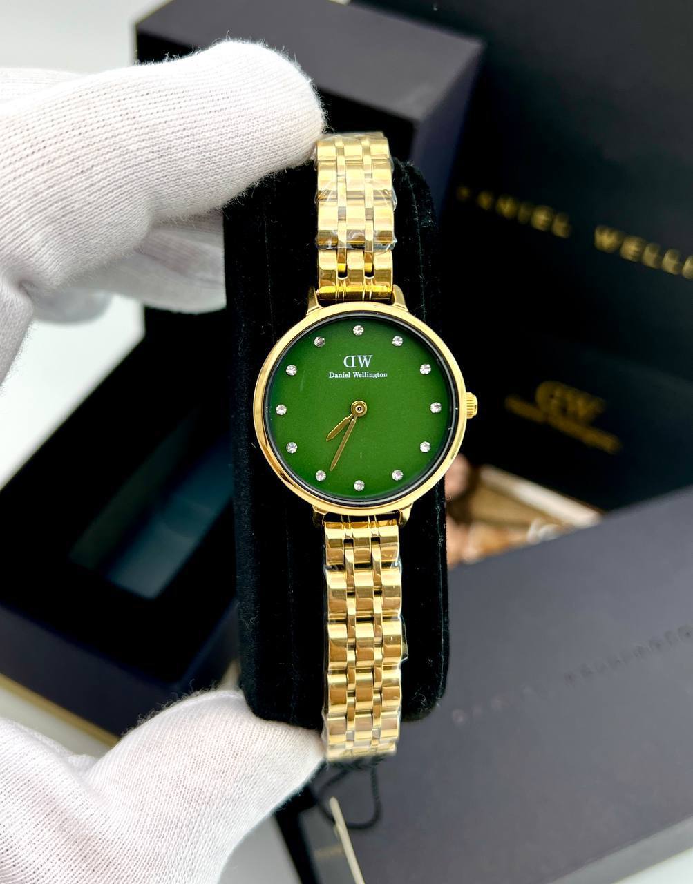 ساعت مچی زنانه دنیل ولینگتون DW صفحه سبز بند طلایی