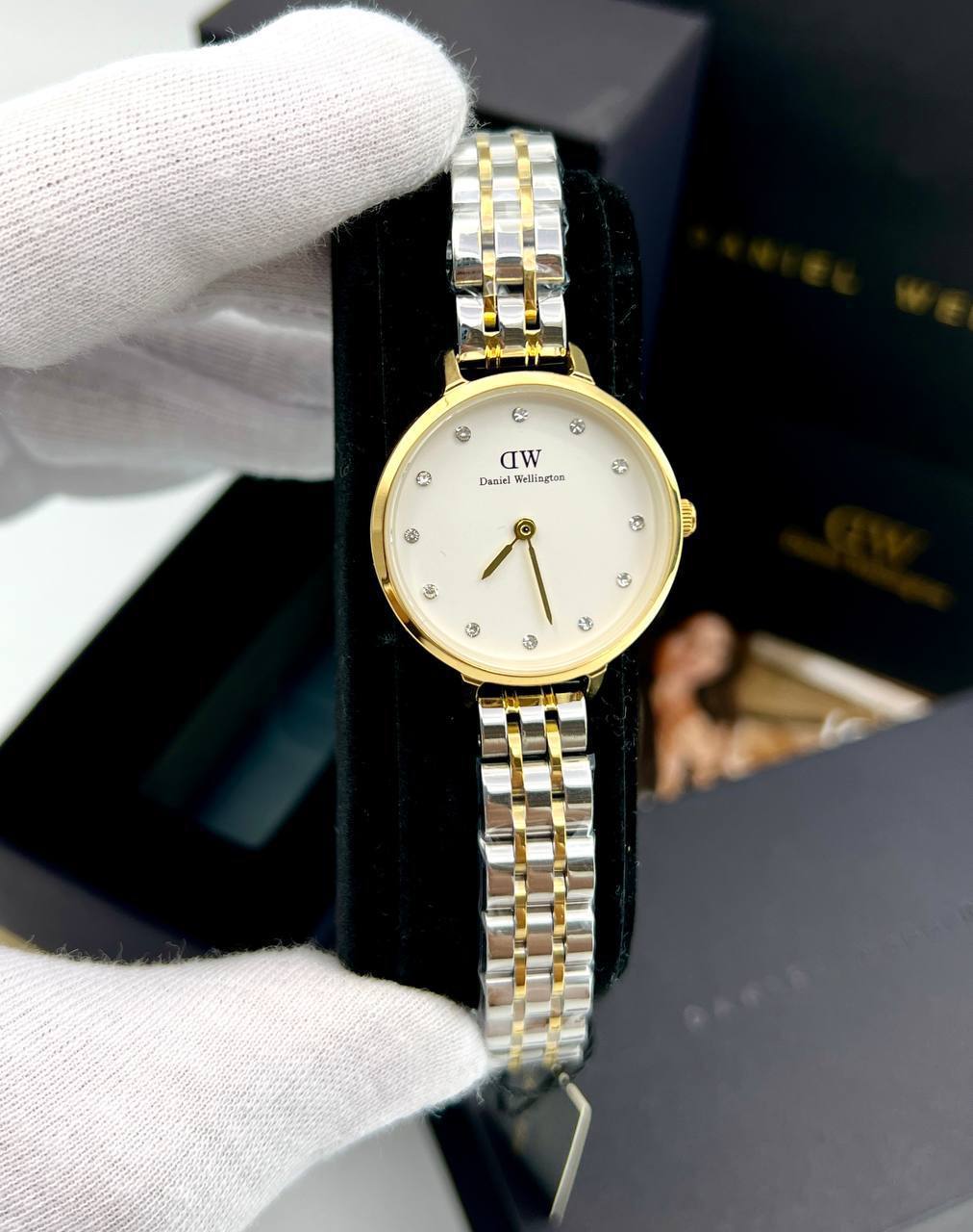 ساعت مچی زنانه دنیل ولینگتون DW صفحه سفید بند استیل طلایی