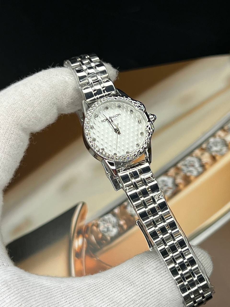 ساعت مچی زنانه رومنسون کلاسیک صفحه گرد سفید نگین دار بند استیل