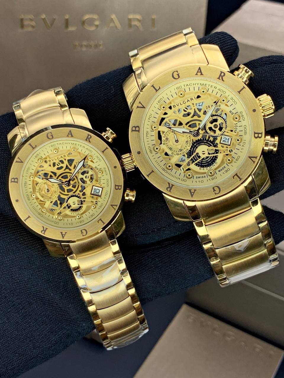 ساعت مچی زنانه مردانه بولگاری Bvlgari صفحه طلایی بند طلایی