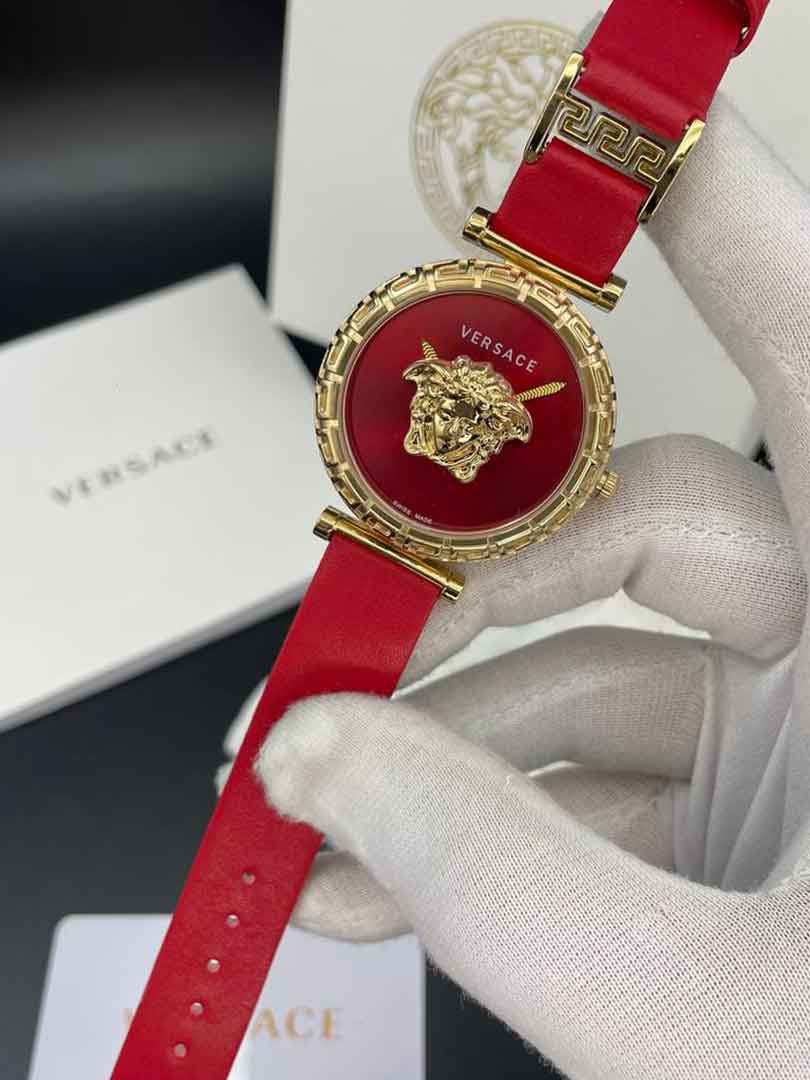 ساعت مچی زنانه ورساچه گرکا بندقرمزدور طلایی صفحه قرمزVersace Greca 2024