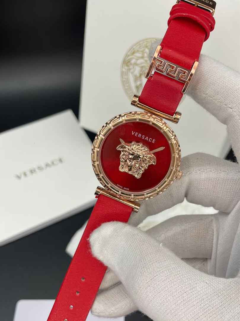 ساعت مچی زنانه ورساچه گرکا بند قرمز دوررزگلدصفحه قرمزVersace Greca 2024