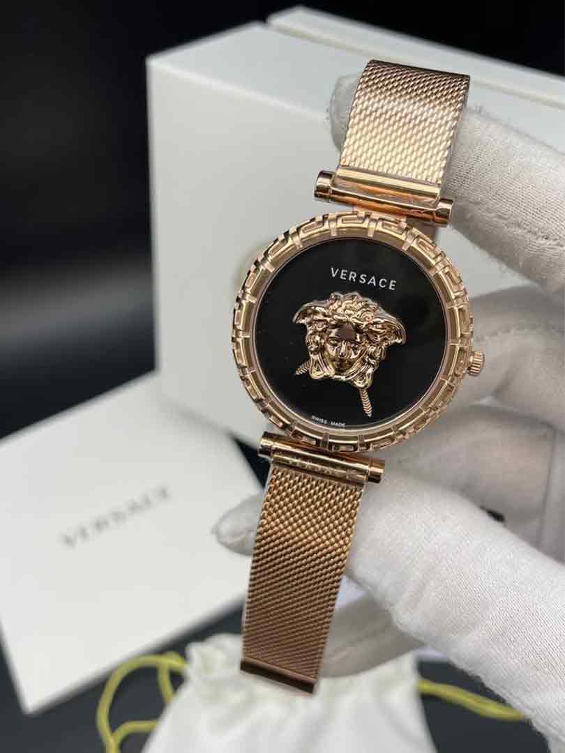 ساعت مچی زنانه ورساچه گرکا رزگلد صفحه مشکی Versace Greca Rosegold and balck Green Screen