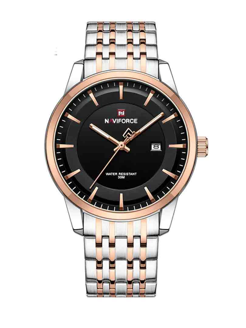 مدل نیوی فورس NF8202این ساعت دارای قاب گرد با طراحی مینیمال و شیک است. صفحه نمایش آن آنالوگ بوده و از ویژگی های آن می توان به ضد آب بودن، نمایش تاریخ و ساعت دومی اشاره کرد. این ساعت دارای بند فلزی با روکش PVD می باشد.