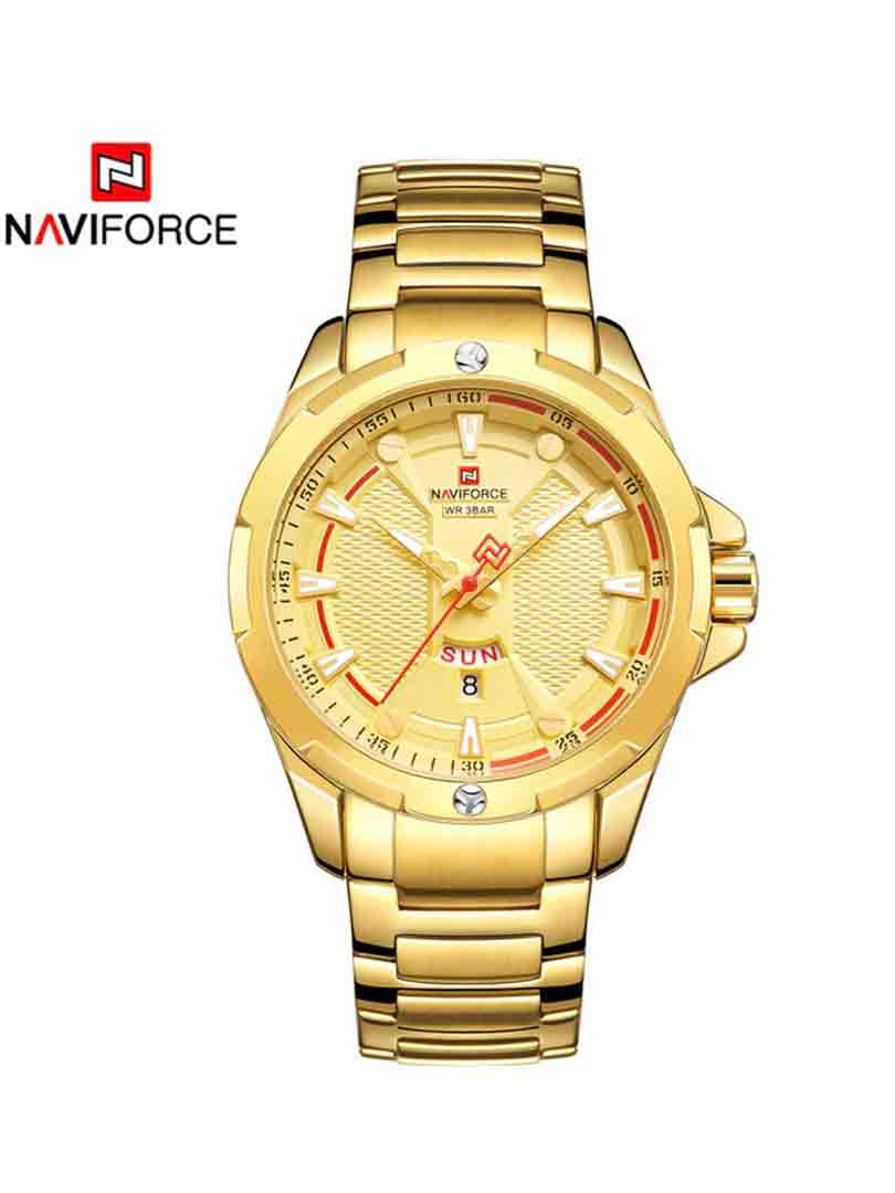مدل نیوی فورس NF8202این ساعت دارای قاب گرد با طراحی مینیمال و شیک است. صفحه نمایش آن آنالوگ بوده و از ویژگی های آن می توان به ضد آب بودن، نمایش تاریخ و ساعت دومی اشاره کرد. این ساعت دارای بند فلزی با روکش PVD می باشد.