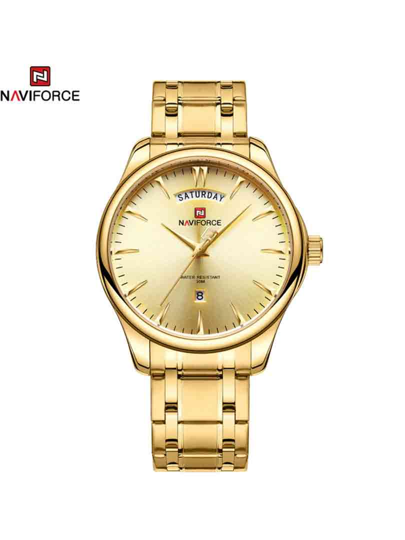 مدل نیوی فورس NF8202این ساعت دارای قاب گرد با طراحی مینیمال و شیک است. صفحه نمایش آن آنالوگ بوده و از ویژگی های آن می توان به ضد آب بودن، نمایش تاریخ و ساعت دومی اشاره کرد. این ساعت دارای بند فلزی با روکش PVD می باشد.