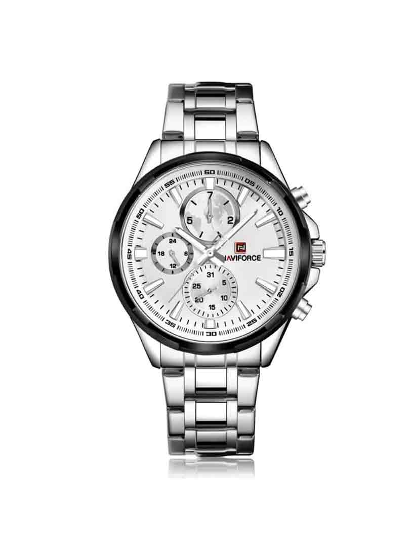 مدل نیوی فورس NF8202این ساعت دارای قاب گرد با طراحی مینیمال و شیک است. صفحه نمایش آن آنالوگ بوده و از ویژگی های آن می توان به ضد آب بودن، نمایش تاریخ و ساعت دومی اشاره کرد. این ساعت دارای بند فلزی با روکش PVD می باشد.