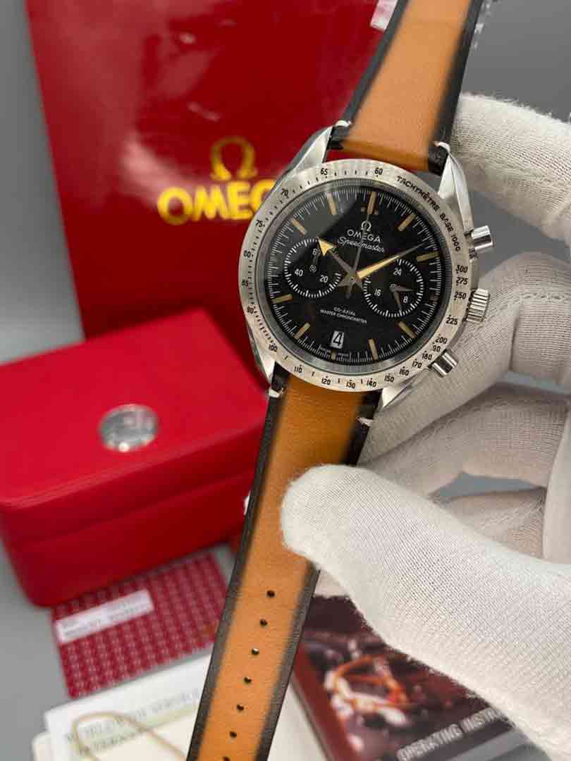 ساعت مچی مردانه امگا اسپید مستر بندچرمی قهوه ای Omega Speedmaster