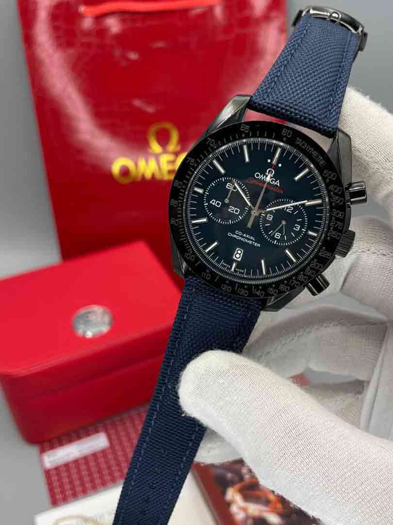 ساعت مچی مردانه امگا اسپید مستر بند برزنتی سورمه ای Omega Speedmaster