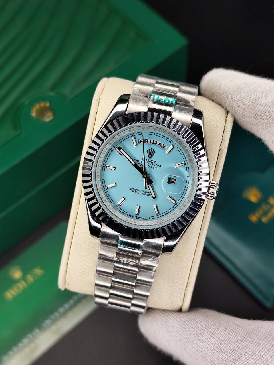ساعت مچی مردانه رولکس دی دیت ROLEX DAY DATE باطری خور صفحه آبی آسمانی بند استیل