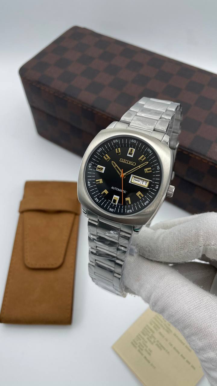 ساعت مچی مردانه سیکو صفحه مربع مشکی بند فلزی استیل
