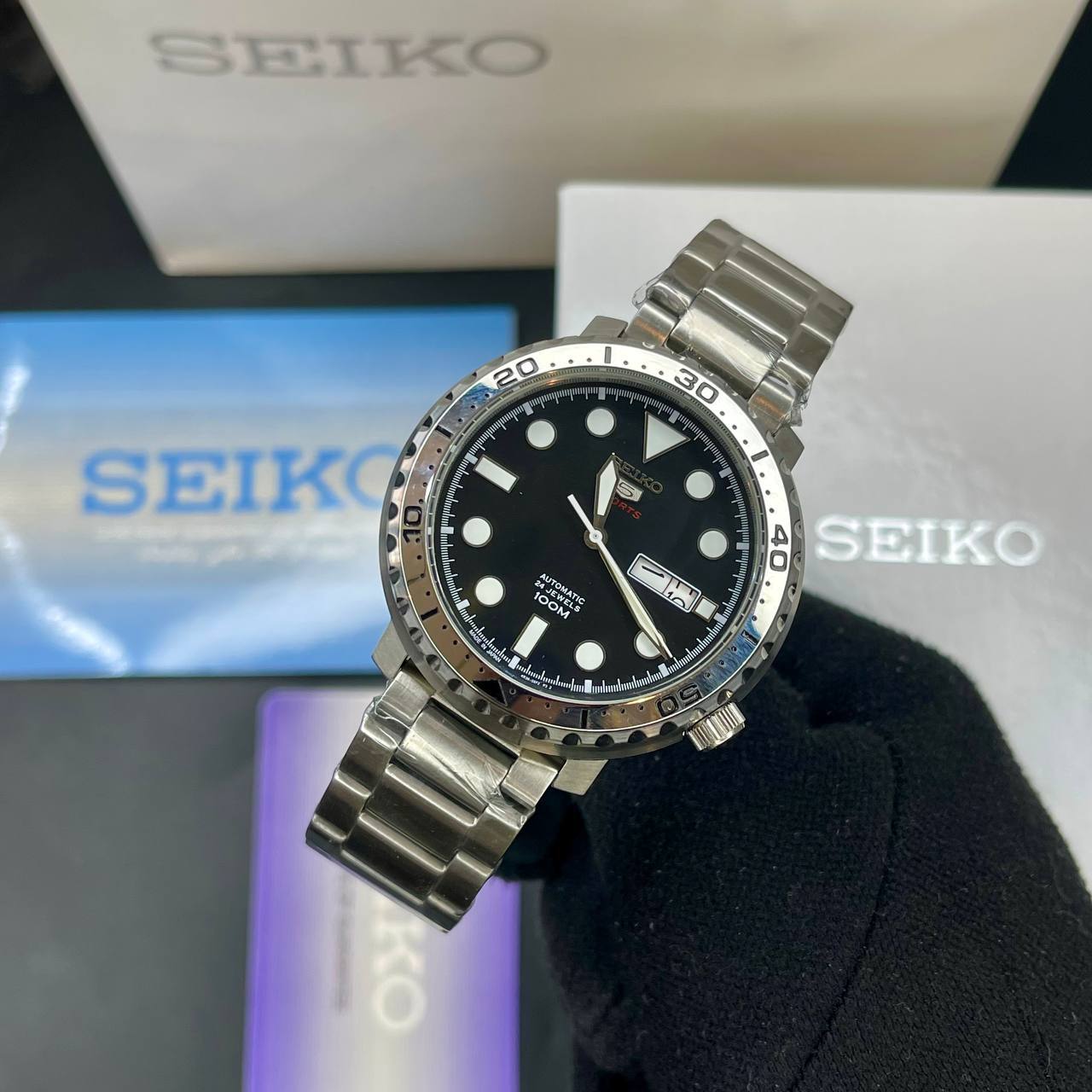 ساعت مچی مردانه سیکو صفحه گرد آبی مشکی بند فلزی استیل