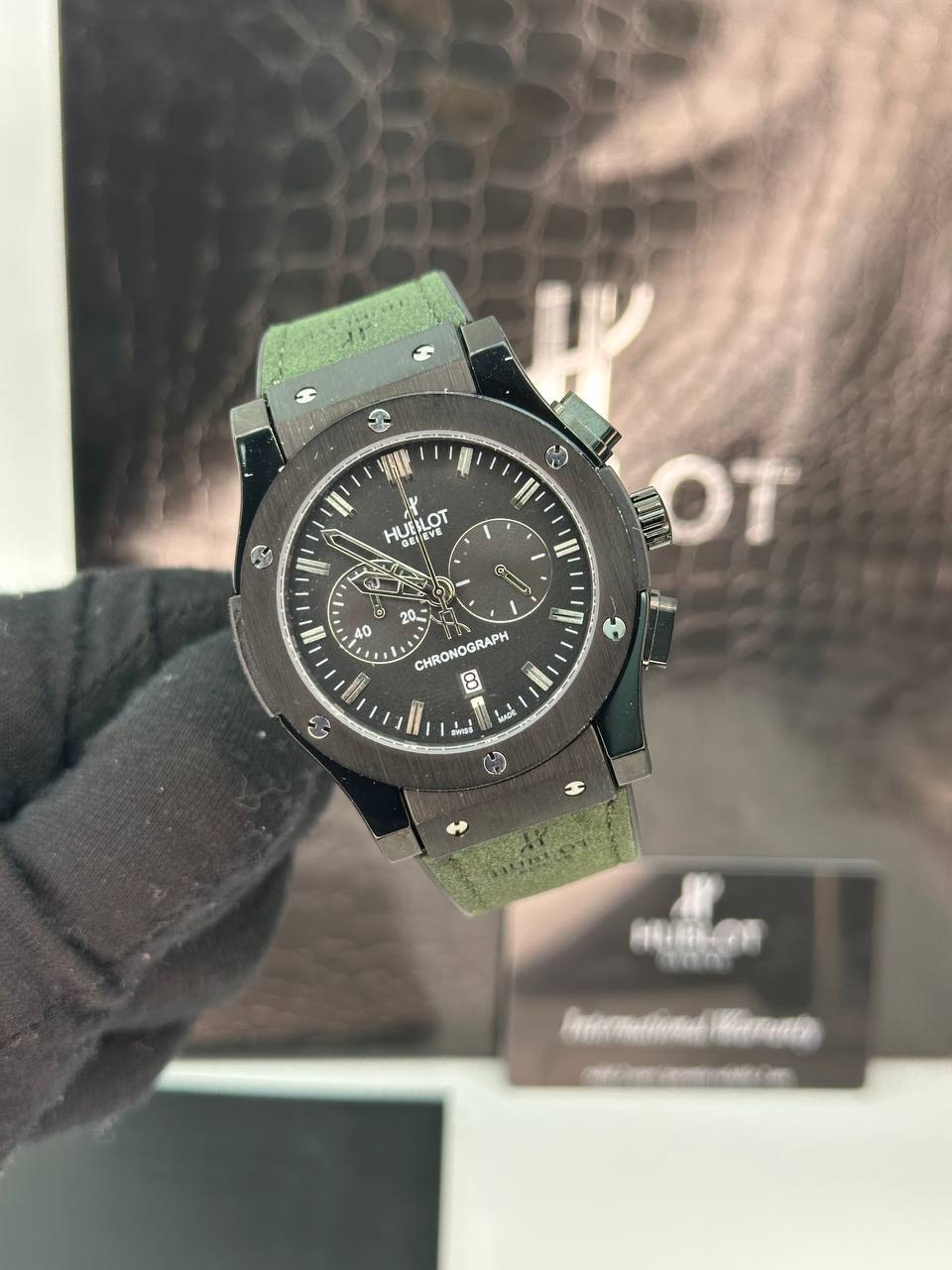 ساعت مچی مردانه هابولت برند جیر سبز قاب مشکی
