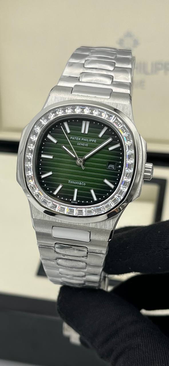 ساعت مچی مردانه پتک فیلیپ ناتیلوس دور نگین صفحه سبز پررنگ