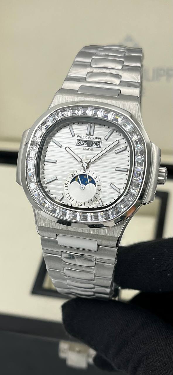ساعت مچی مردانه پتک فیلیپ ناتیلوس دو تقویم دور نگین صفحه سفید