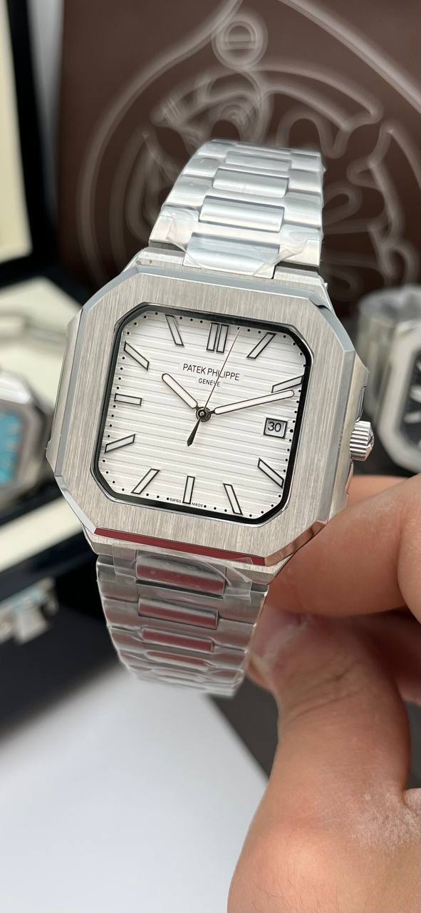 پتک فیلیپ اسکوار: یک ساعت با طراحی مدرن و خلاقانه با صفحه مربع و بند چرمی یا فلزی که جذابیت خاصی دارد.
