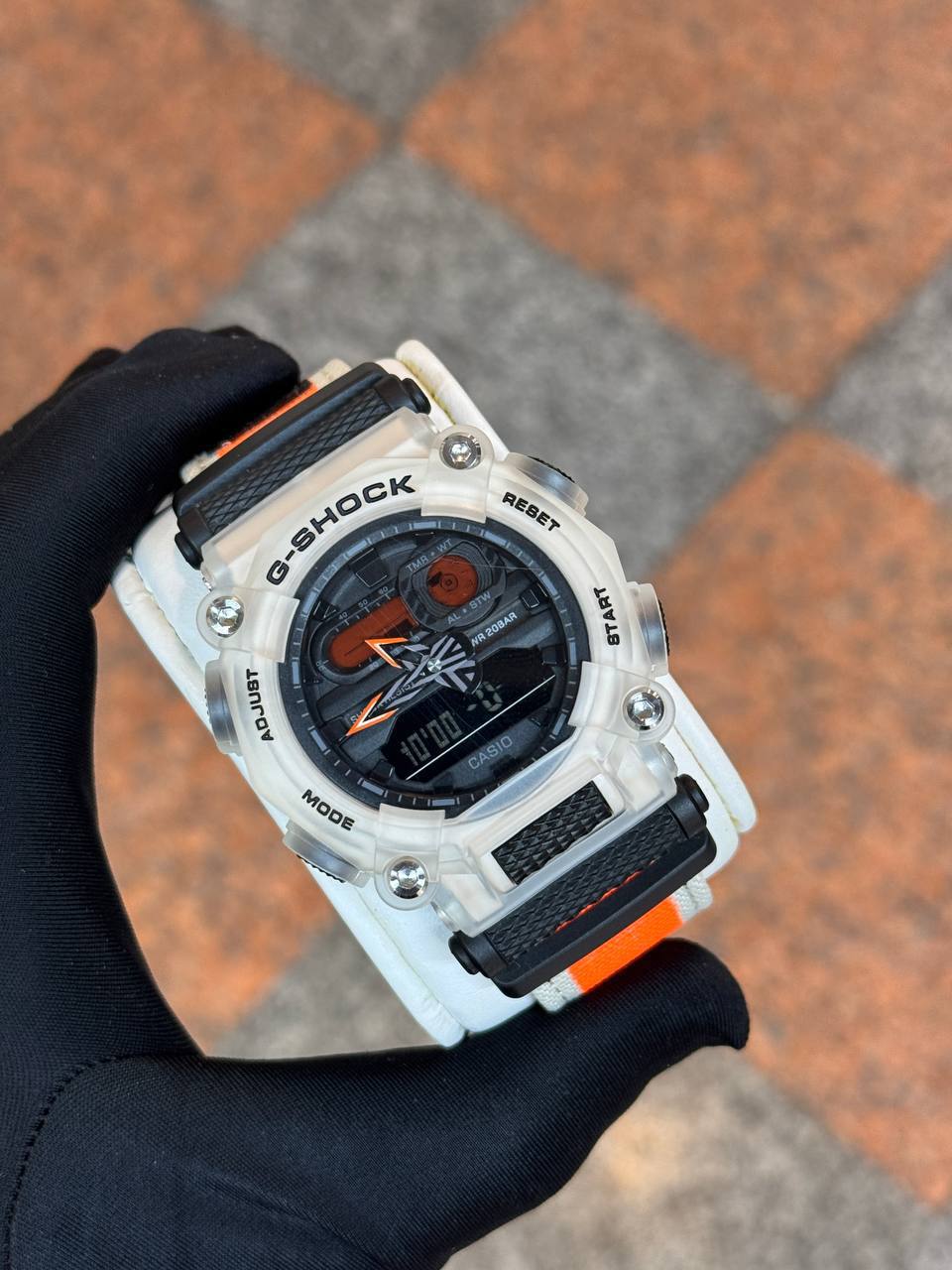 ساعت مچی مردانه کاسیو جیشاک مدلG900 صفحه سفید نارنجی