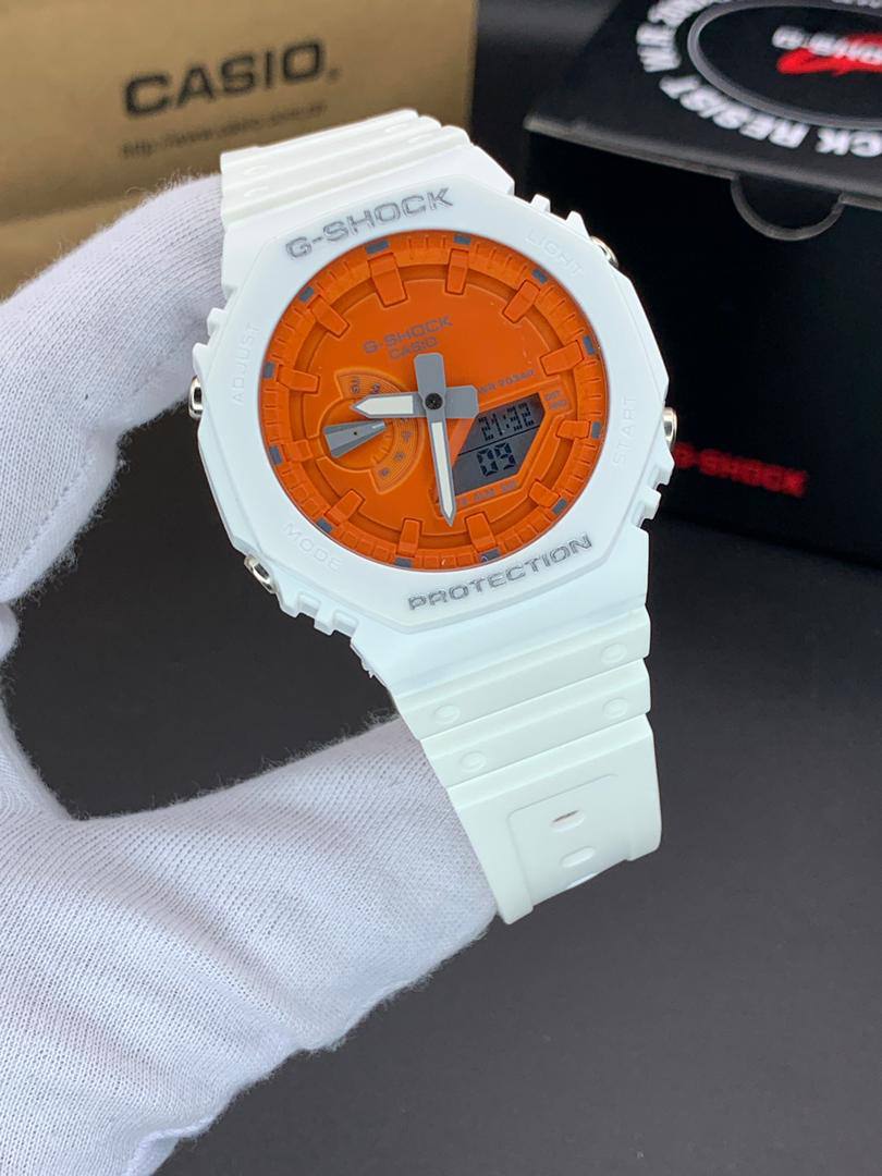 ساعت مچی کاسیو جیشاک مدل GA-2100 صفحه نارنجی بند سفید