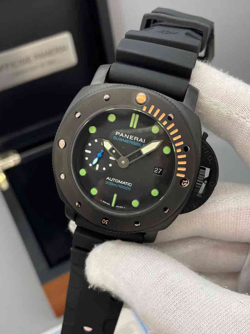 ساعت پنرای Submersible مردانه اتوماتیک قاب مشکی بند رابر مشکی صفحه مشکی Panerai-2024-balck