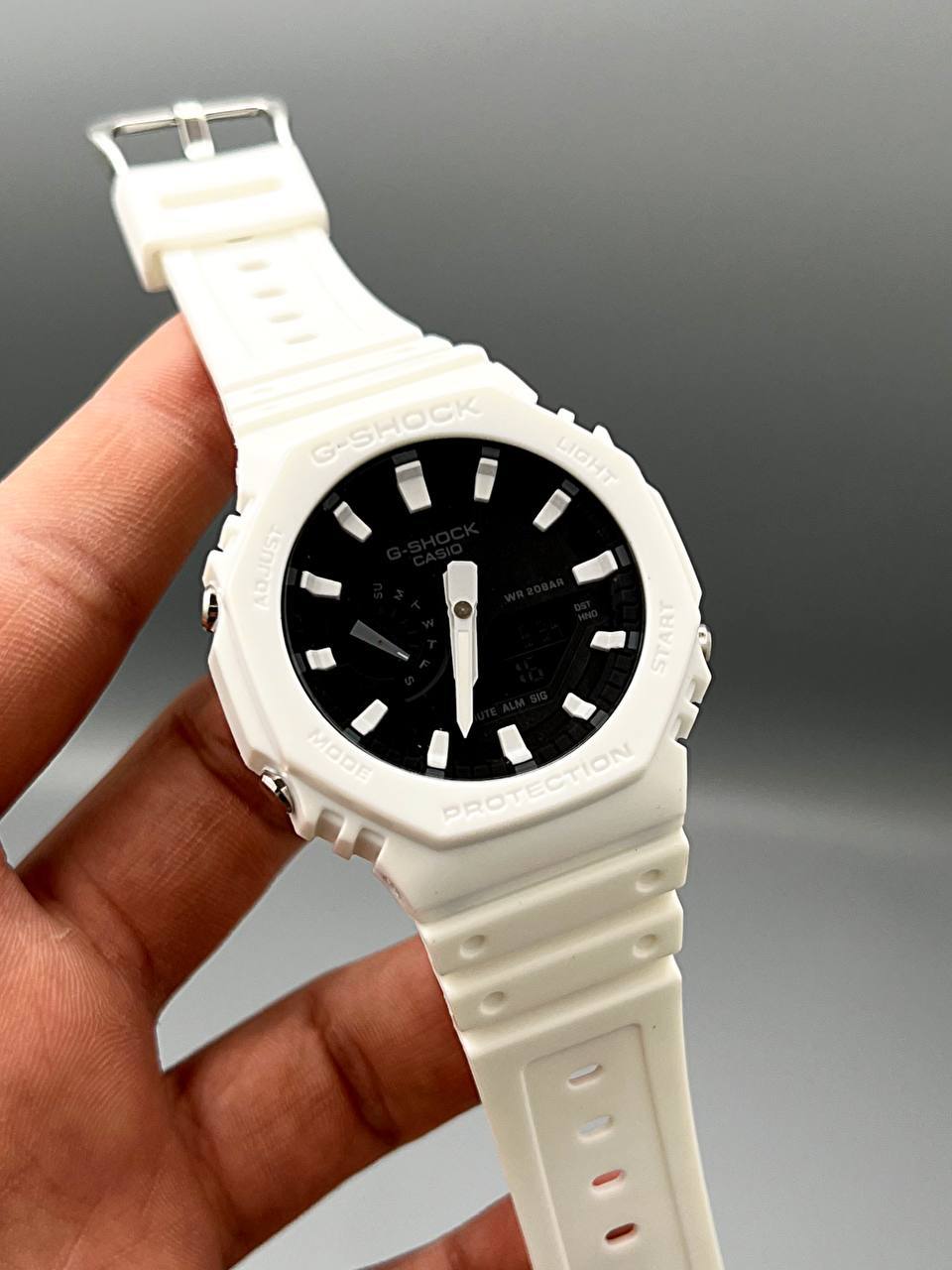 کاسیو جیشاک مدل GA-2100 بند لاستیکی سفید صفحه مشکی/سفید