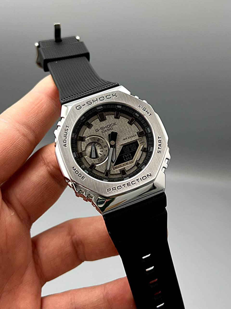 کاسیو جیشاک مدل GA-2100 قاب فلزی صفحه خاکی دور استیل